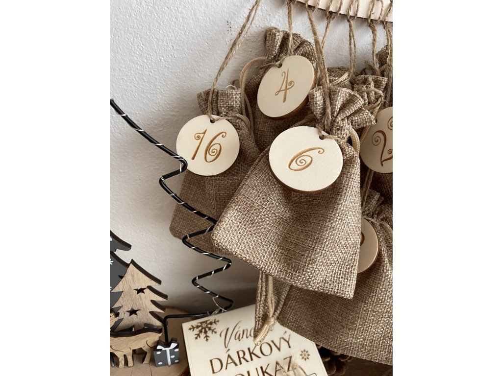 Součástí jsou čísla a provázek, pytlíčky můžete zvolit vlastní nebo si vybrat variantu s pytlíčky.