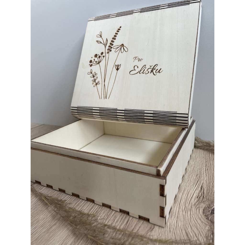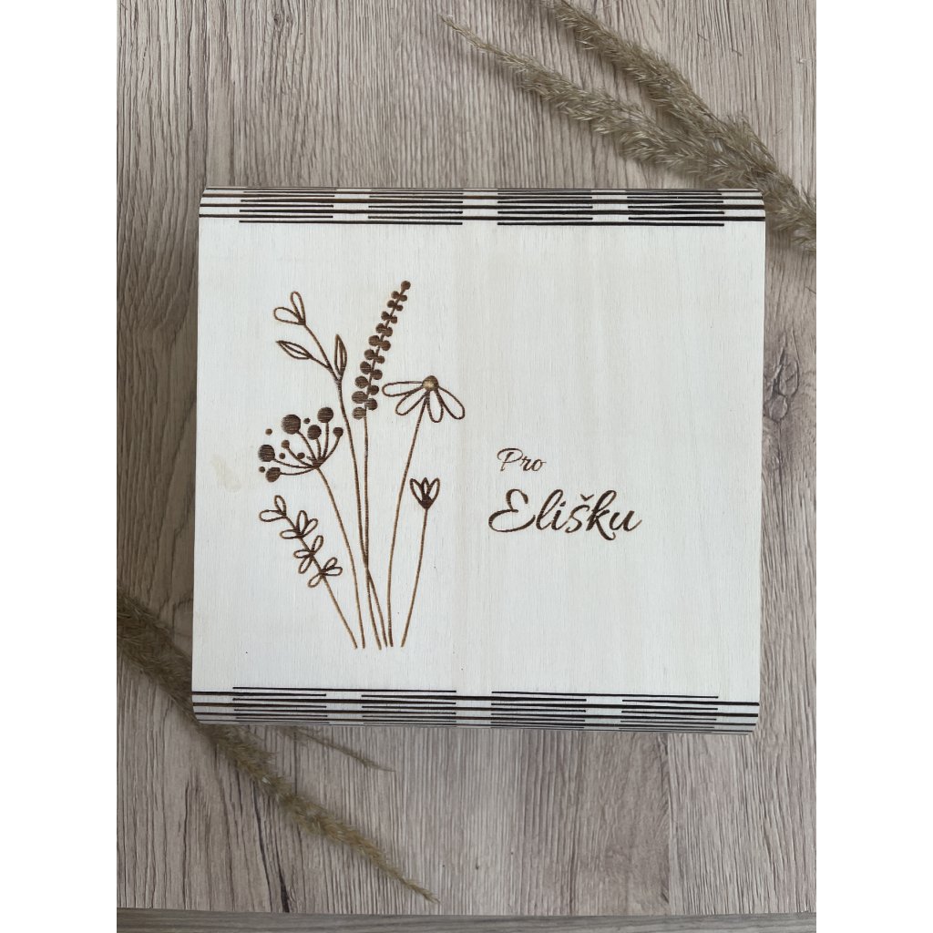 Na víčko vám rádi doplňujeme vlastní gravírovaný text – jméno, krátké věnování, datum nebo osobní vzkaz. Díky tomu může být krabička jedinečná a mít osobní hodnotu.