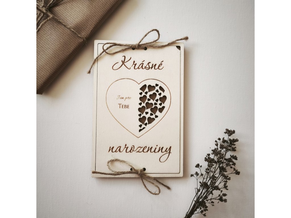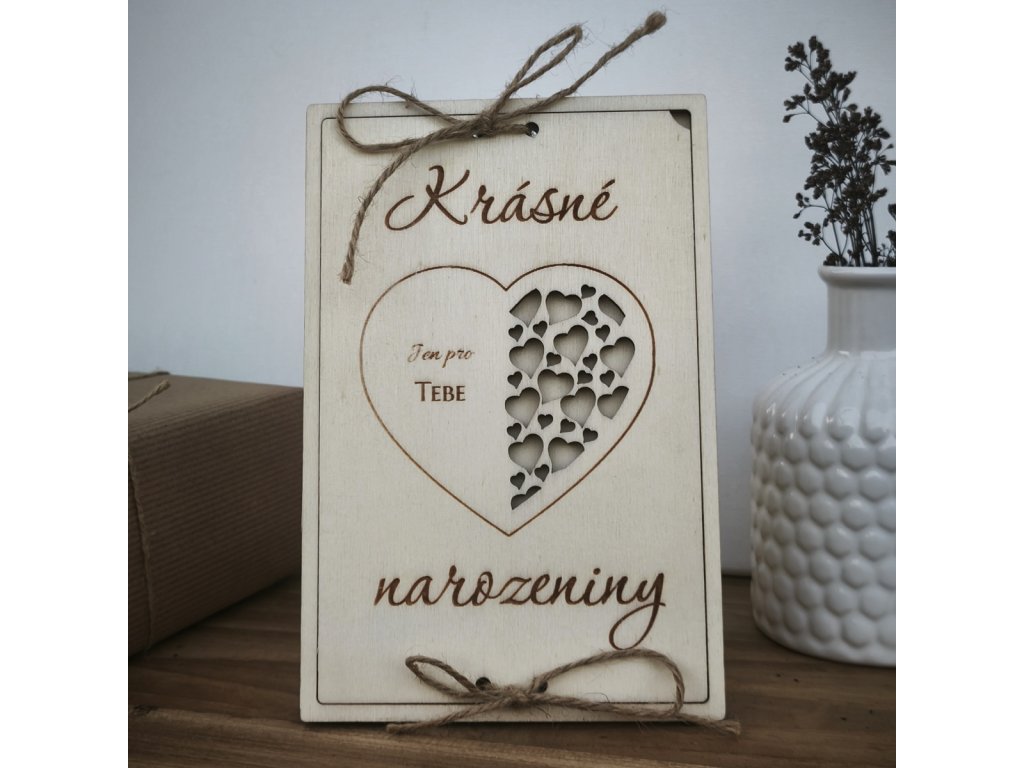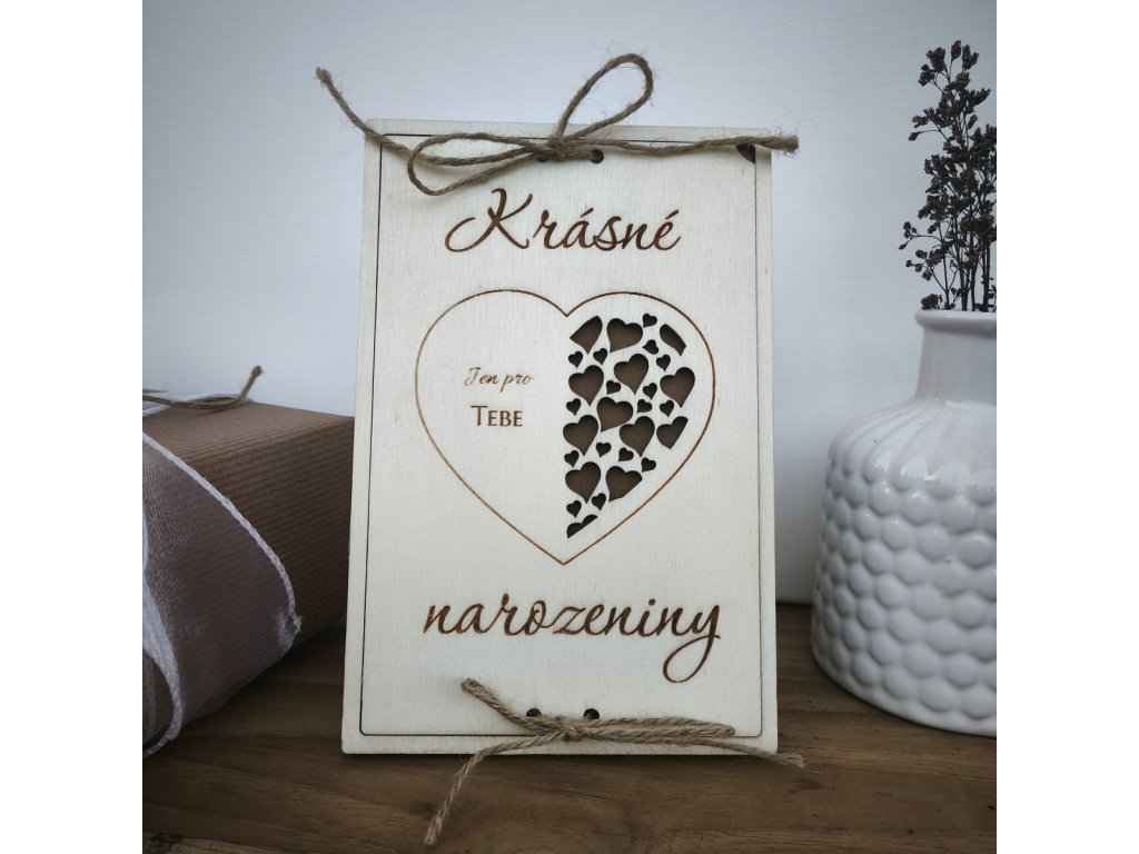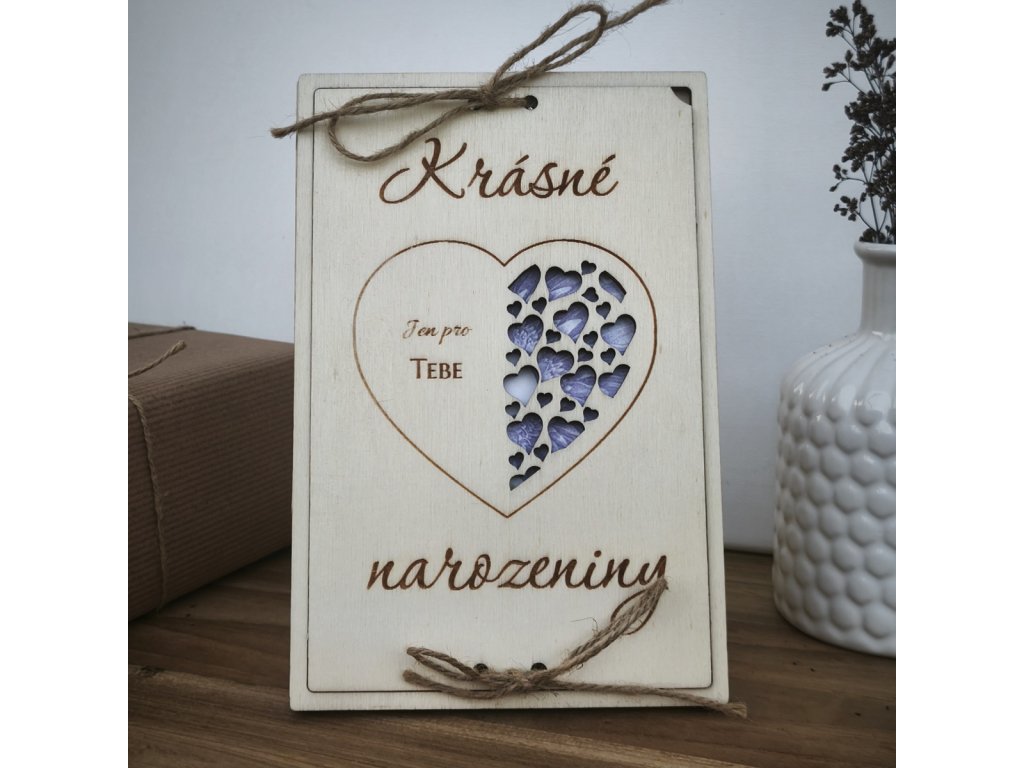Dřevěné přání na peníze k narozeninám - SRDCE