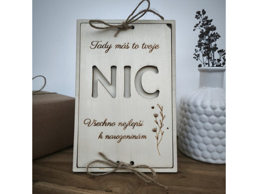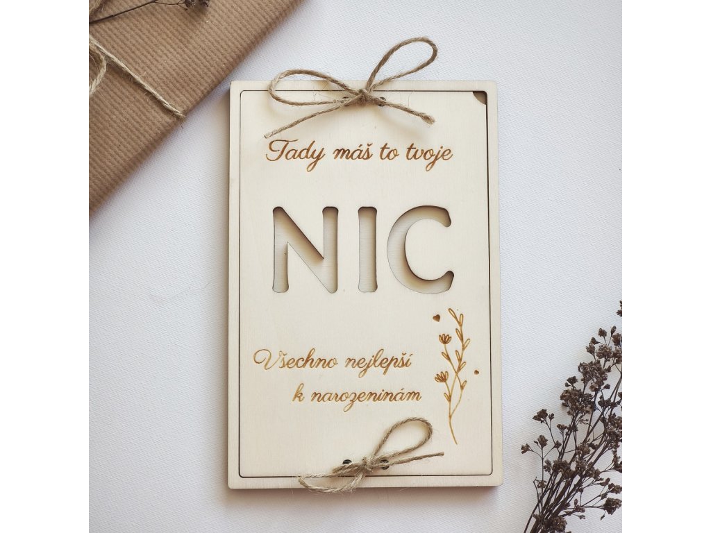 Přání s nápisem „NIC“ pobaví a zároveň překvapí – protože uvnitř NIC úplně nezůstane.
