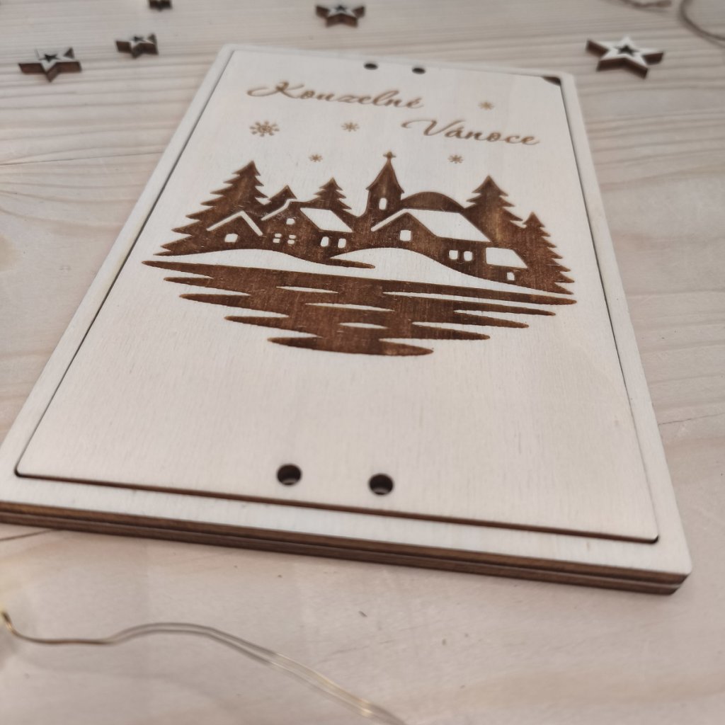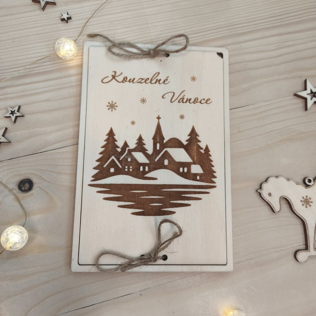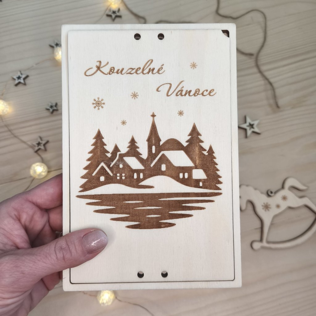Dřevěné vánoční přání na peníze - chaloupky
