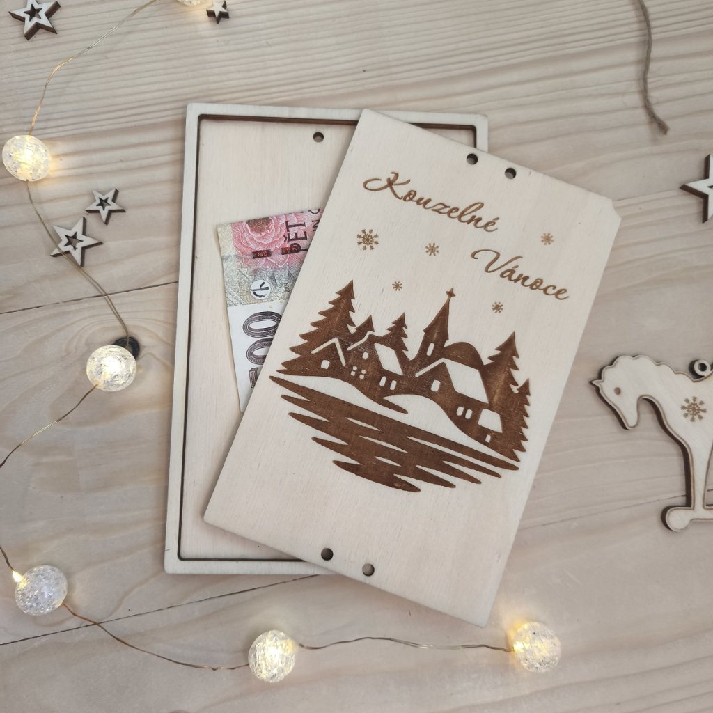 Darujte peníze s nápadem a elegancí. Dřevěné přání je jednoduchý a krásný způsob, jak věnovat peníze k vánocům - a zároveň nechat něco na památku.