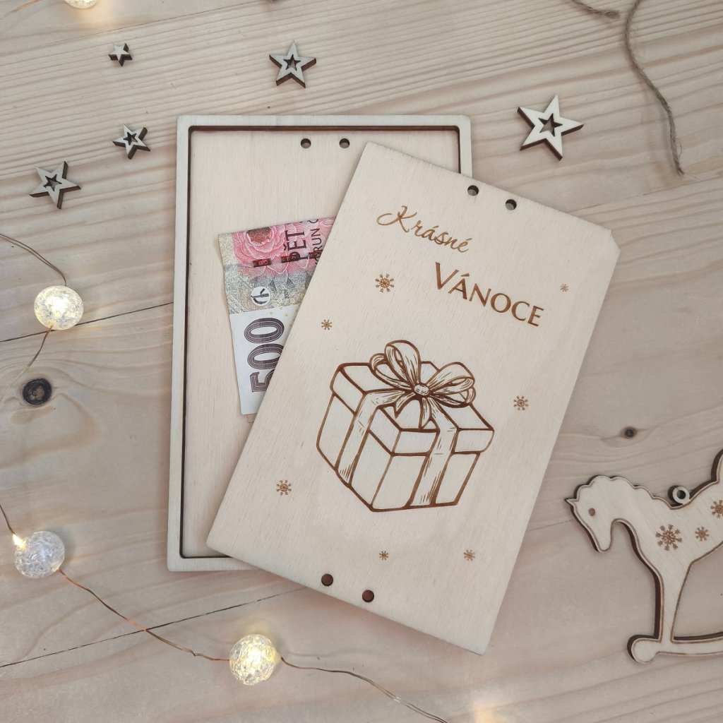 Darujte peníze s nápadem a elegancí. Dřevěné přání je jednoduchý a krásný způsob, jak věnovat peníze k vánocům - a zároveň nechat něco na památku.