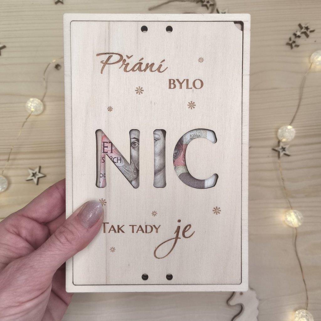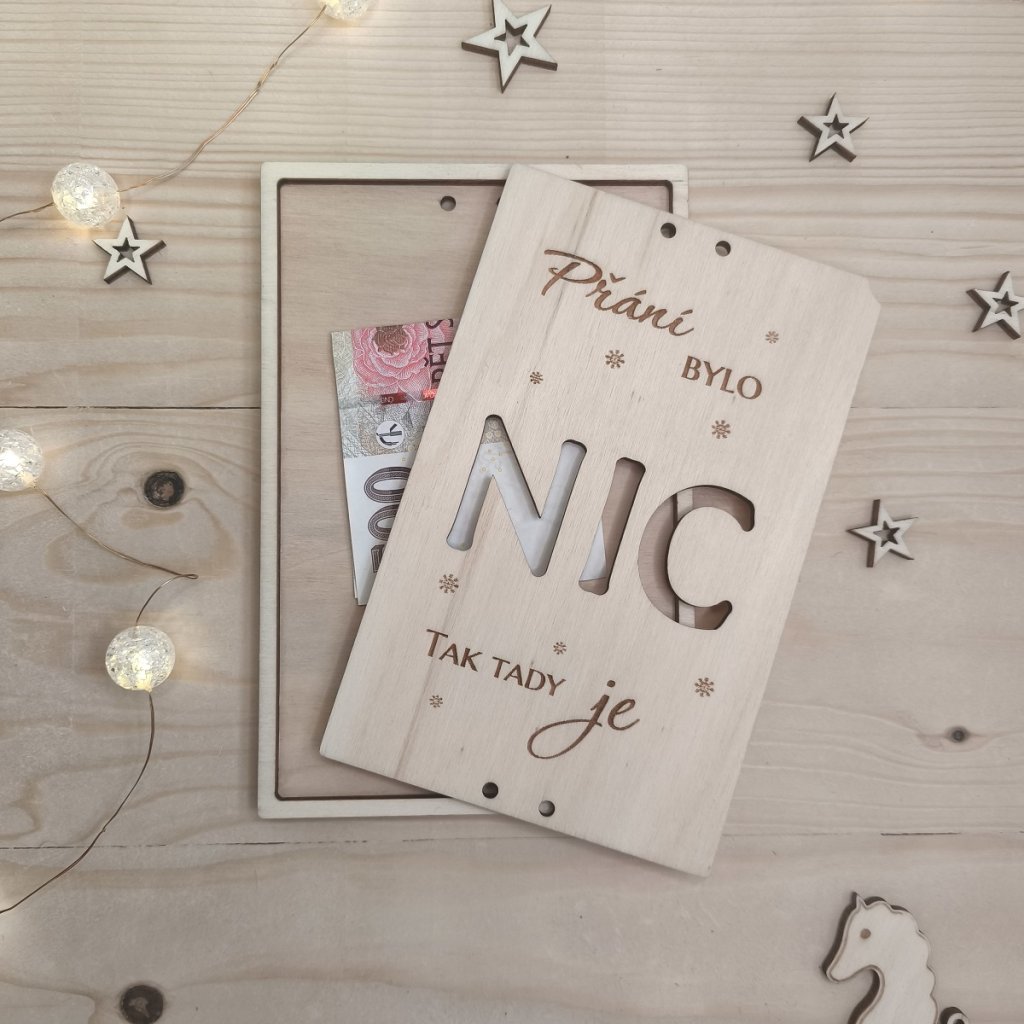 Dřevěné vánoční přání na peníze - NIC