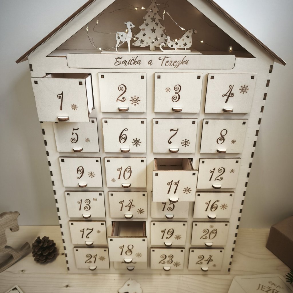 Adventní domeček s 24 šuplíčky je krásným způsobem, jak si užít kouzlo vánočního čekání každý den.
