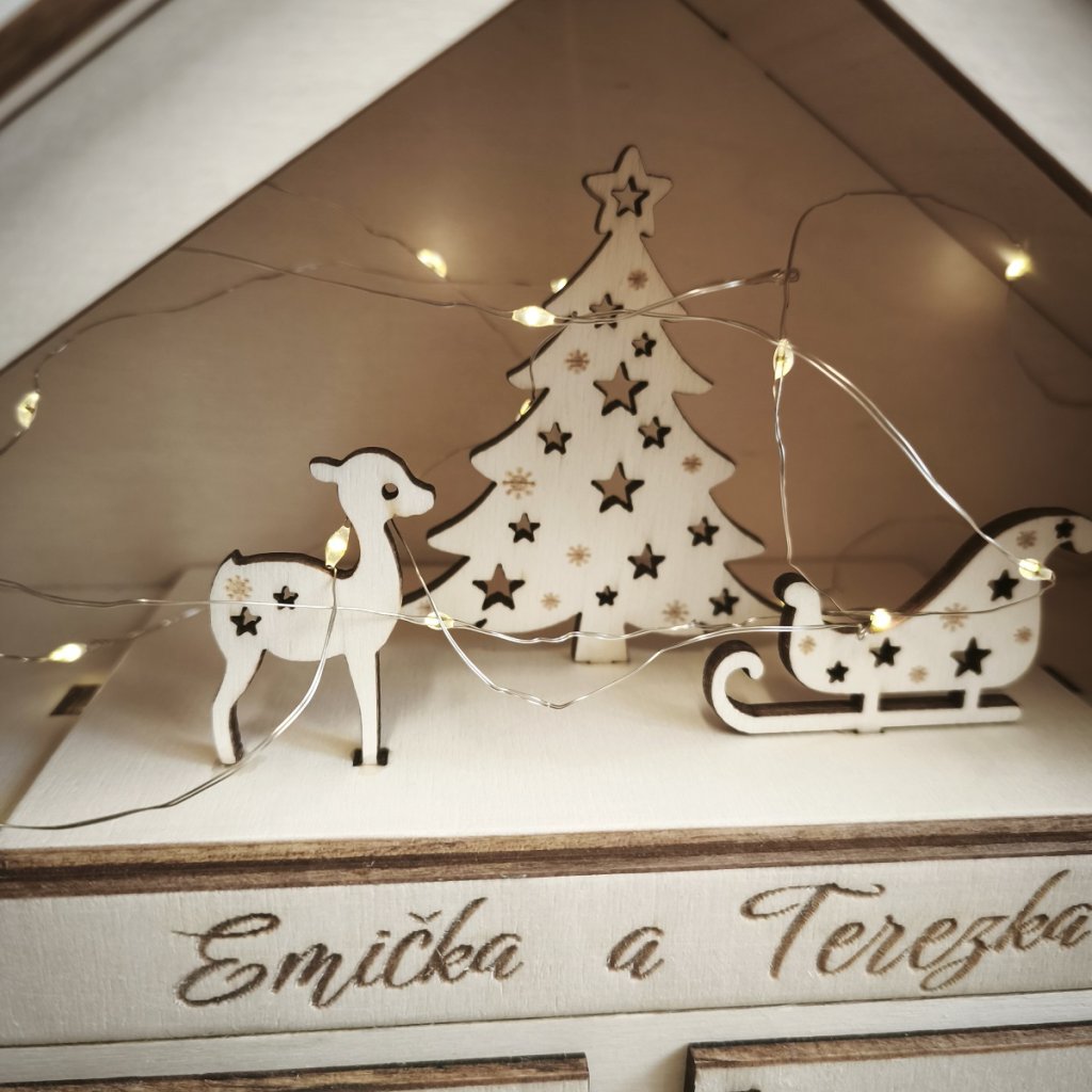 Dřevěný adventní kalendář - domeček se jménem - větší