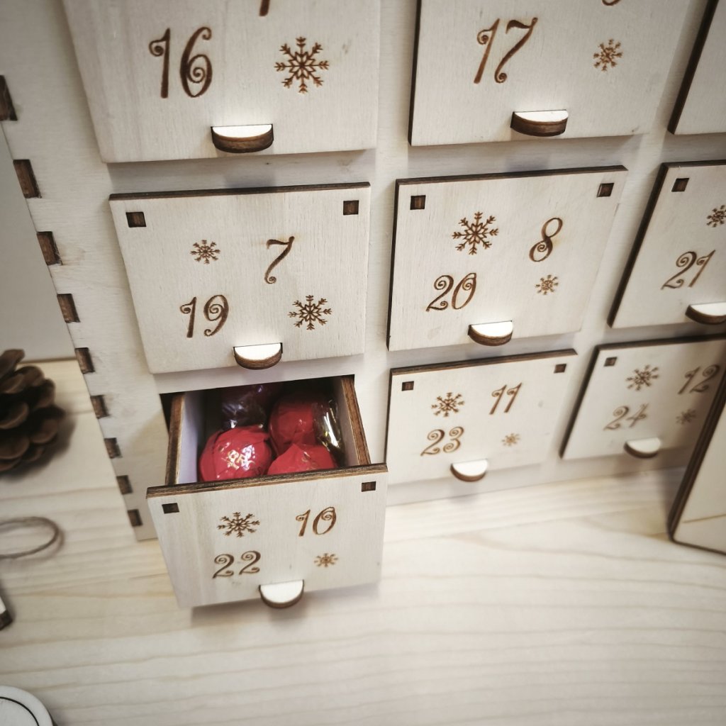 Každý šuplíček má dvě čísla, takže v něm najdete prostor pro všechny 24 adventní dny.