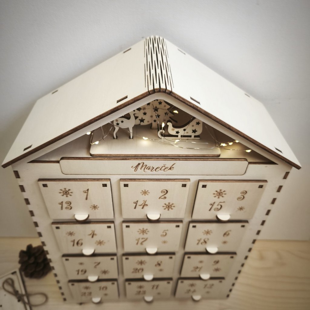 Dřevěný adventní kalendář - domeček se jménem - menší