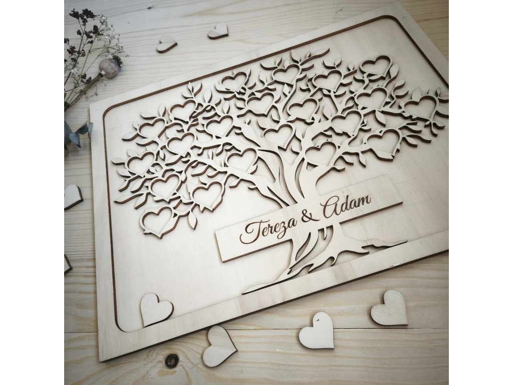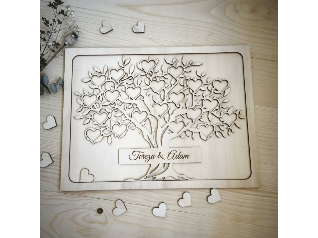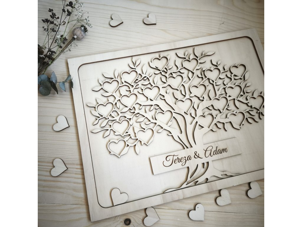 Dřevěný svatebni strom na podpisy