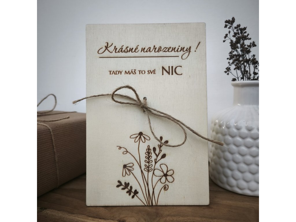 Dřevěné přání s květinovým motivem, které potěší svou něžností a zůstane jako milá vzpomínka.