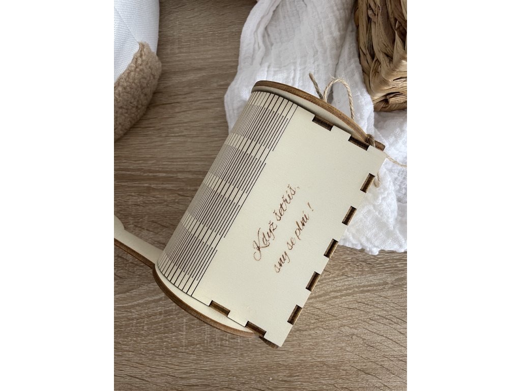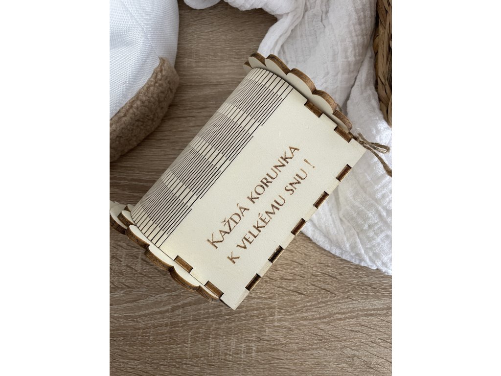 Detailní laserové gravírování z ní dělá nejen funkční, ale i krásný doplněk. Snadno se otevírá pomocí provázků a můžete si ji nechat ozdobit vlastním textem, jménem či věnováním.