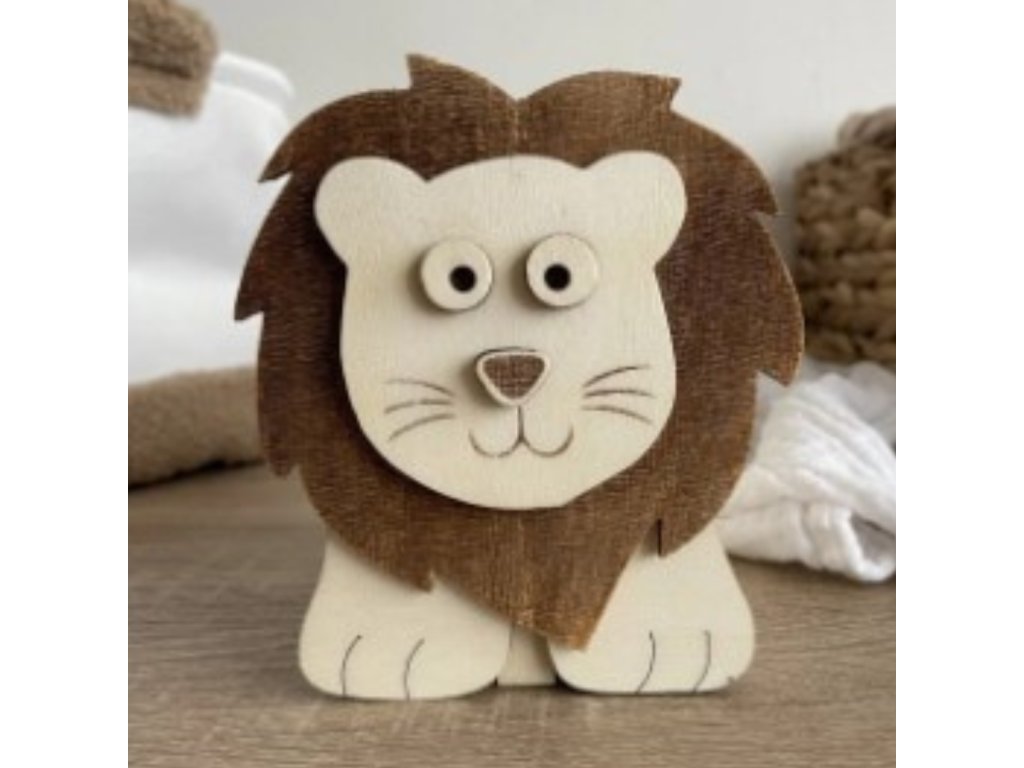Pokladnička ve tvaru lva z dřevěné překližky spojuje originální design a praktičnost.