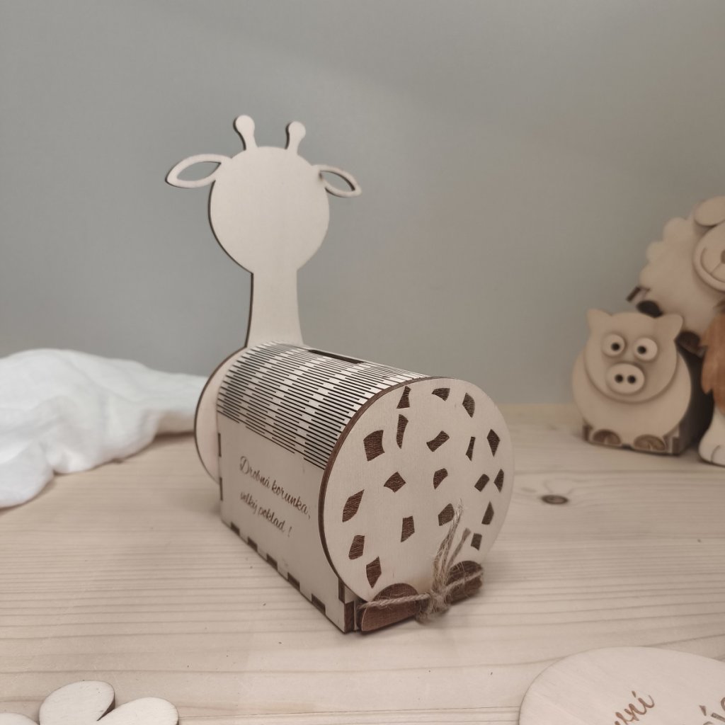 Na pokladničku vám vygravírujeme jméno nebo krátký osobní vzkaz. Právě díky tomu se z ní stává osobní předmět, který má smysl i po letech. Nejen místo pro peníze, ale i drobný kus dřeva s příběhem.