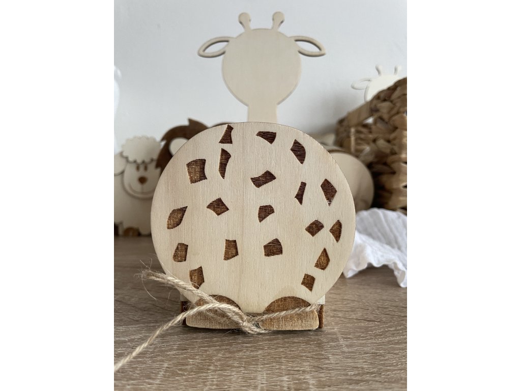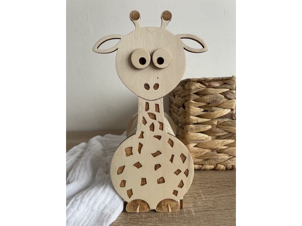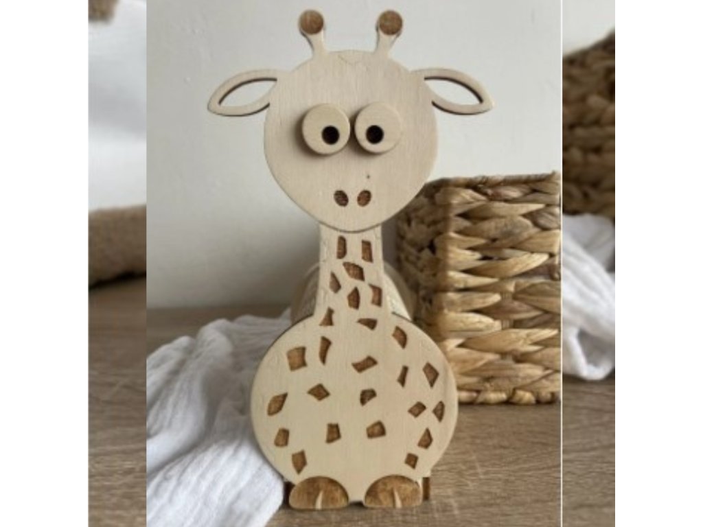 Pokladnička ve tvaru žirafy z dřevěné překližky přináší hravý design a praktičnost.