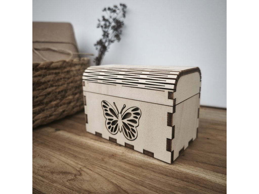 Malá dřevěná truhlička s jemným motivem motýla je ideálním místem pro vzkaz, drobný dárek nebo šperk.
